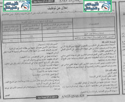 - توظيف مركز التكوين المهني و التمهين حمادي كرومة -ولاية سكيكدة 27/01/2013
