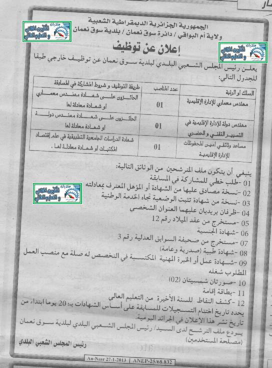 - توظيف بلدية سوق النعمان ولاية ام البواقي