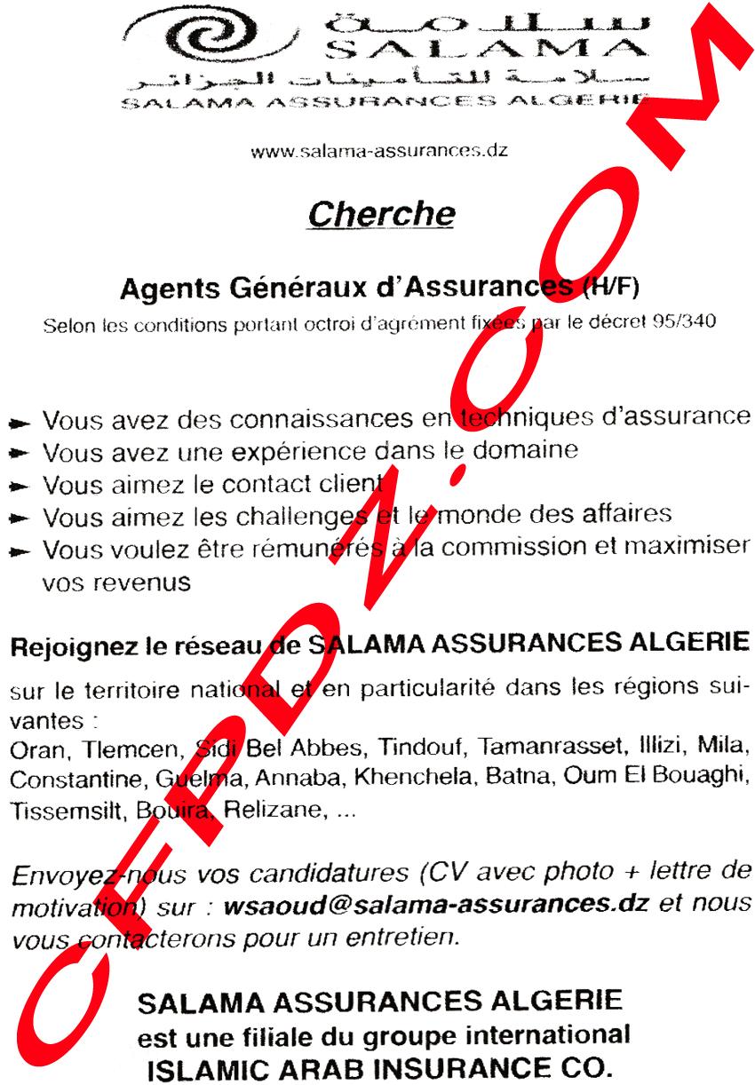 توظيف سلامة للتأمينات الجزائر ماي 2013 Posted: 24 May 2013 04:11 PM PDT توظيف سلامة للتأمينات الجزائر ماي 2013 أعوان عامون للتأمينات لمعلومات أوفر حول عدد المناصب و كذا شروط المسابقة انتظر تحميل الصورة:  دعواتكم |