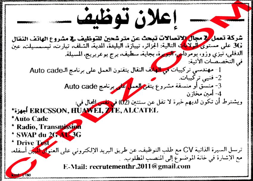 توظيف شركة في مجال الإتصالات بعدة ولايات ماي 2013 Posted: 24 May 2013 04:10 PM PDT توظيف شركة في مجال الإتصالات بعدة ولايات ماي 2013 مهندسي تركيبات في الهاتف النقال فنيي تركيبات منسق أو منسقة مشروع أمين مخازن لمعلومات أوفر حول عدد المناصب و كذا شروط المسابقة انتظر تحميل الصورة:  دعواتكم |