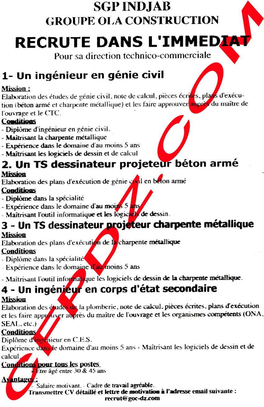 توظيف مؤسسة ola للبناء انجاب indjab ماي 2013 Posted: 24 May 2013 04:44 PM PDT توظيف مؤسسة OLA للبناء انجاب INDJAB ماي 2013 مهندس دولة في الهندسة المدنية تقني سامي مصمم اسقاط اسمنت رمادي تقني سامي مصمم اسقاط بناء معدني مهندس لمعلومات أوفر حول عدد المناصب و كذا شروط المسابقة انتظر تحميل الصورة:  دعواتكم |